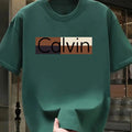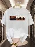 Men's summer 100% pure cotton fashionable casual sports loose Calvin pattern printed round neck short sleeved T-shirt top